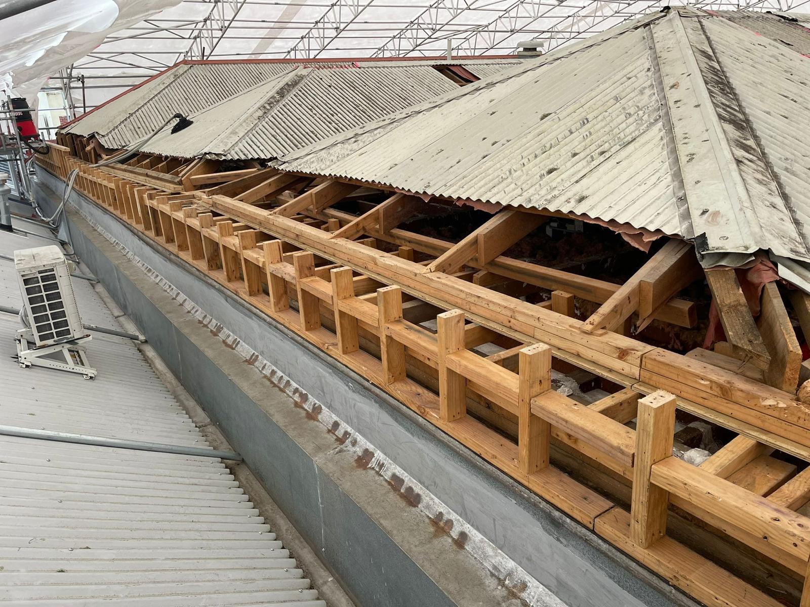 Class B Works: Externally, we removed asbestos bitumen guttering systems from the roofline in preparation for a new roof installation. All asbestos materials were safely dismantled, contained, and disposed of to create a hazard-free environment for the next stage of construction.
