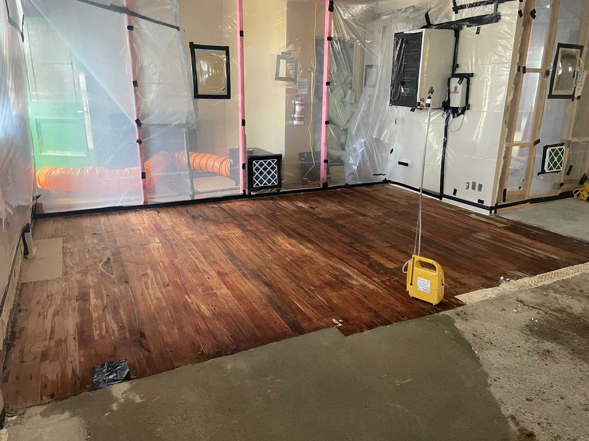 Class A Works: We carefully removed old vinyl flooring with asbestos backing paper from both concrete and wooden subfloors within the internal areas of the building. This process involved full containment, negative air units, and strict decontamination procedures to ensure the safe removal of friable asbestos materials in compliance with all regulations.