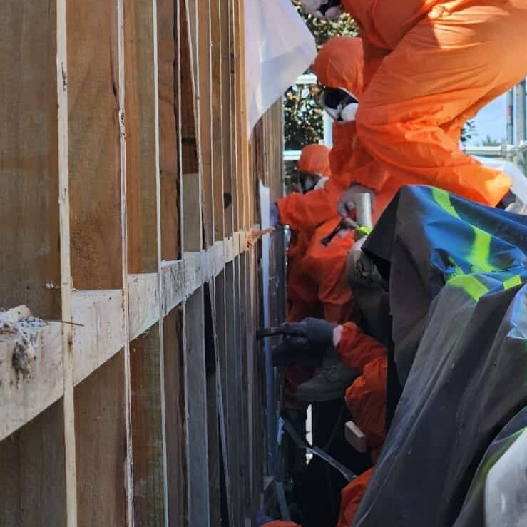 Our team carried out asbestos removal in Auckland, completing the safe and efficient removal of non-friable fibre cement cladding and soffits from the exterior of a community hall. This asbestos cladding and soffit removal project was undertaken in full compliance with New Zealand’s asbestos regulations, ensuring the building was free from hazardous materials before exterior refurbishment works began.